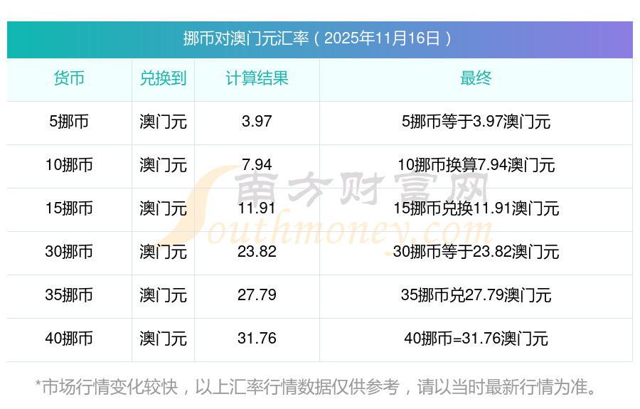 2025年11月16日_今日匯率挪幣對(duì)澳門元匯率查詢
