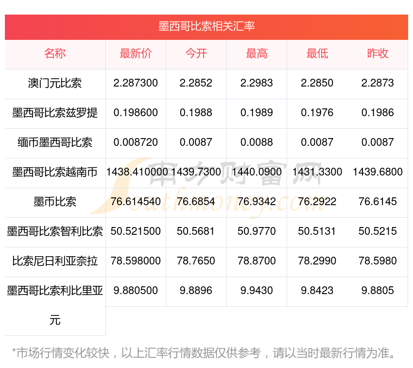 南方財(cái)富網(wǎng)為您提供墨西哥比索對(duì)巴西雷亞爾匯率最新價(jià)格詳情。