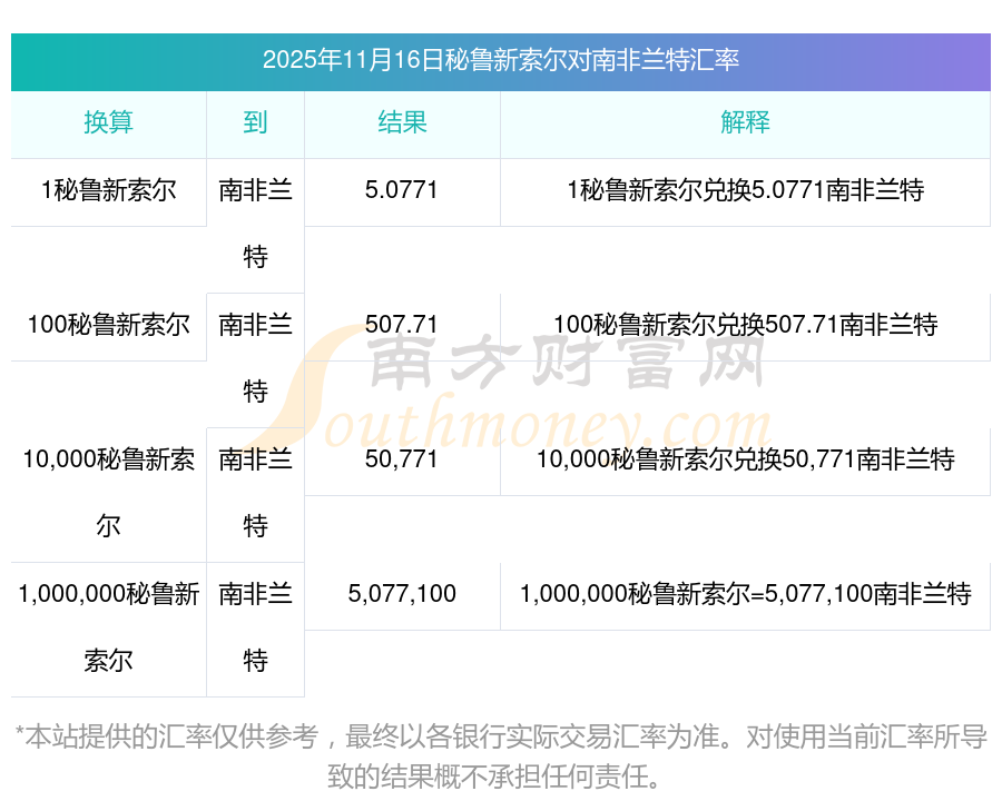 南方財(cái)富網(wǎng)為您提供秘魯新索爾對南非蘭特匯率最新價(jià)格詳情。