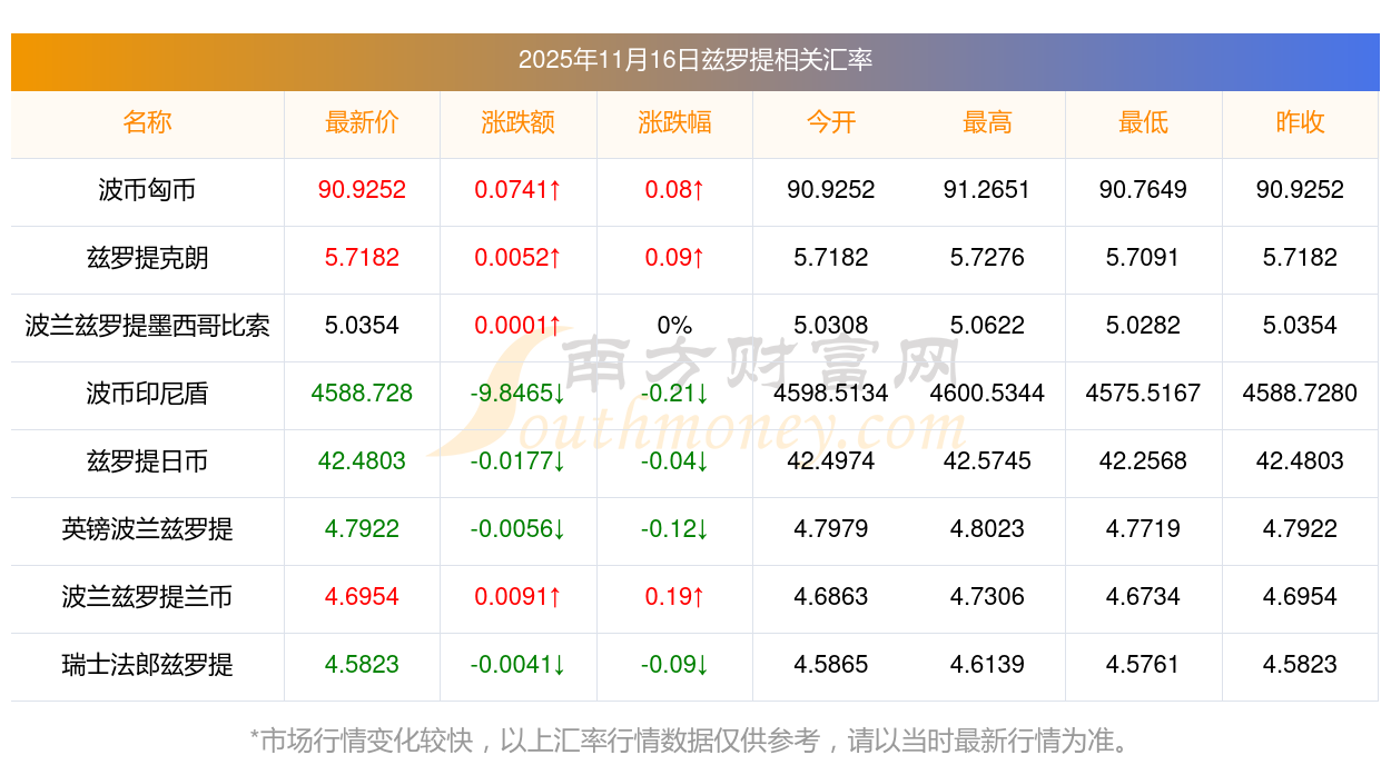 匯市行情 今天茲羅提兌換人民幣多少元?(2025-11-16)