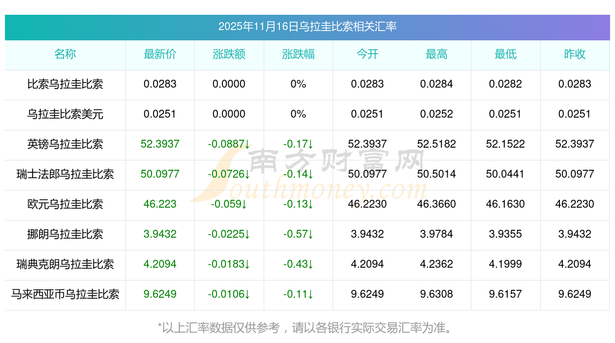 2025年11月16日烏拉圭比索相關(guān)匯率查詢