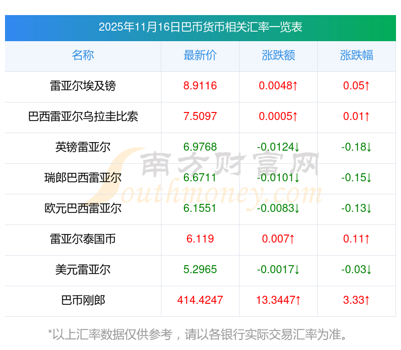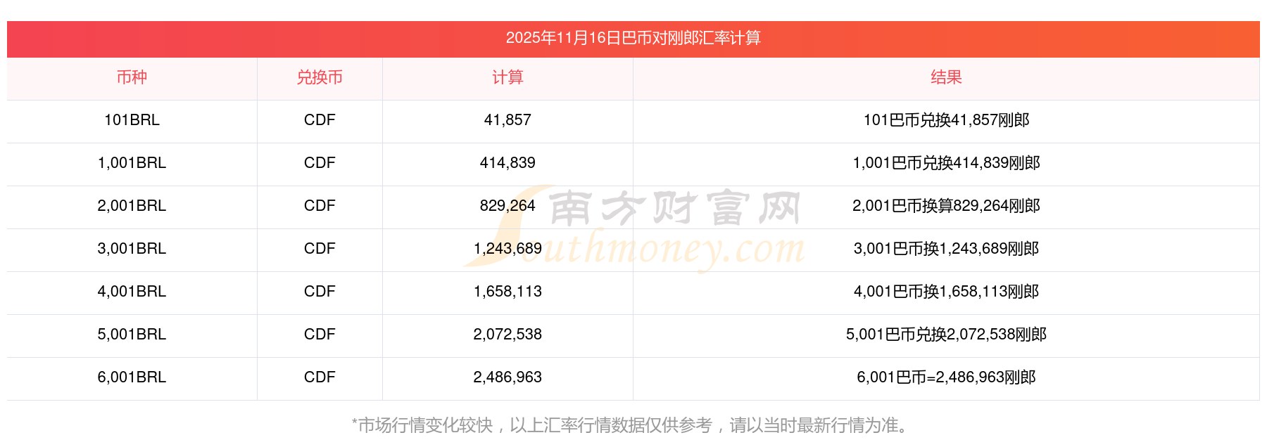 今日匯率調(diào)整 今天巴幣兌換剛郎匯率計(jì)算多少?2025-11-16