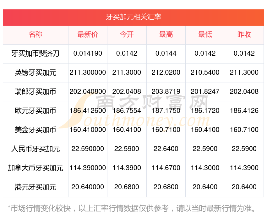 匯率數(shù)據(jù)僅供參考,交易時以銀行柜臺成交價為準(zhǔn)。