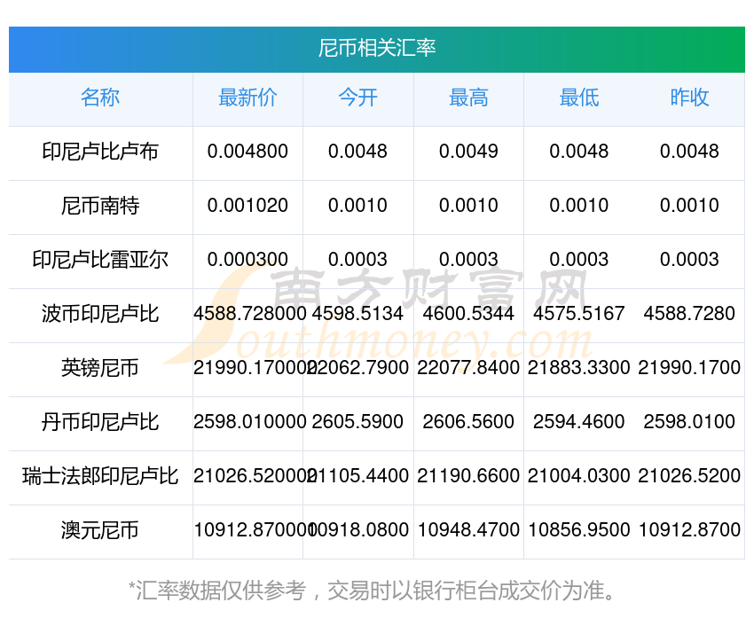 本站提供的匯率僅供參考,最終以各銀行實(shí)際交易匯率為準(zhǔn)。對使用當(dāng)前匯率所導(dǎo)致的結(jié)果概不承擔(dān)任何責(zé)任。