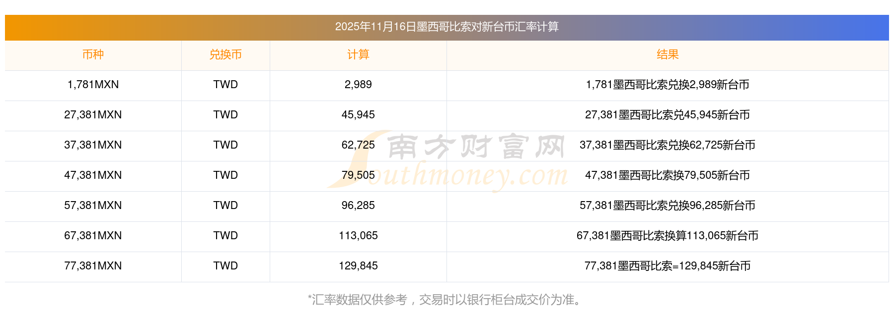 最新墨西哥比索兌新臺(tái)幣匯率查詢表11-16