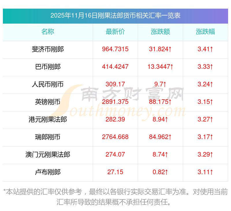 2025年11月16日剛果法郎相關(guān)匯率查詢
