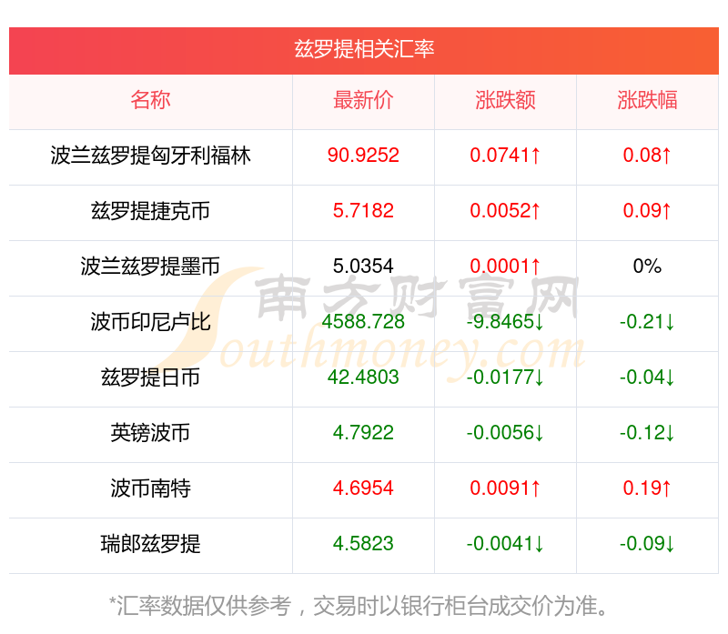 南方財富網為您提供茲羅提對哥倫比亞比索匯率最新價格詳情。