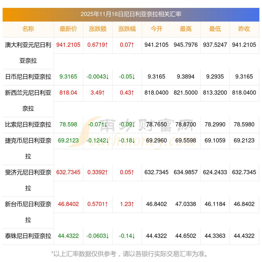 尼日利亞奈拉對秘魯新索爾今日實時匯率表2025-11-16