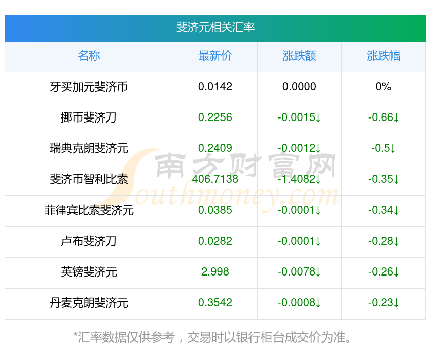 2025年11月16日斐濟元相關(guān)匯率查詢
