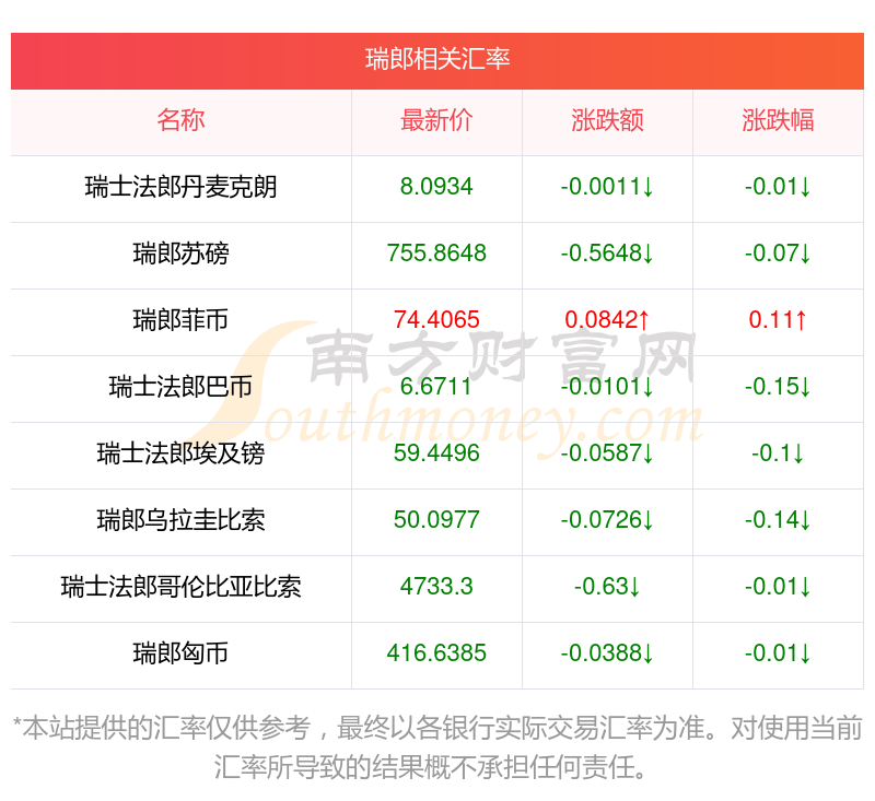 2025年11月16日瑞郎相關(guān)匯率查詢