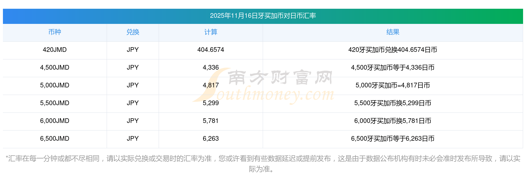 外匯實時匯率_6萬牙買加幣兌日幣匯率是多少? 11月16日