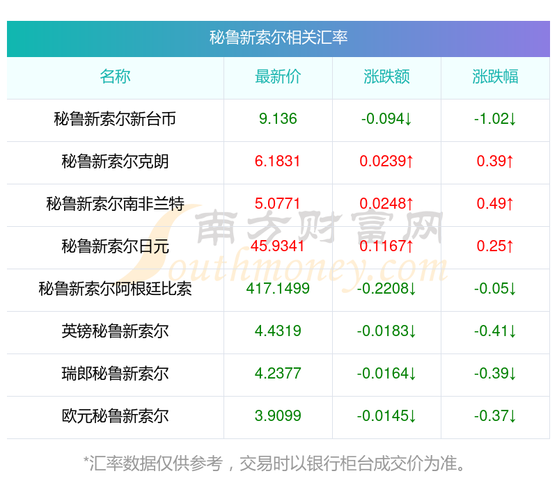 2025年11月16日秘魯新索爾相關(guān)匯率查詢