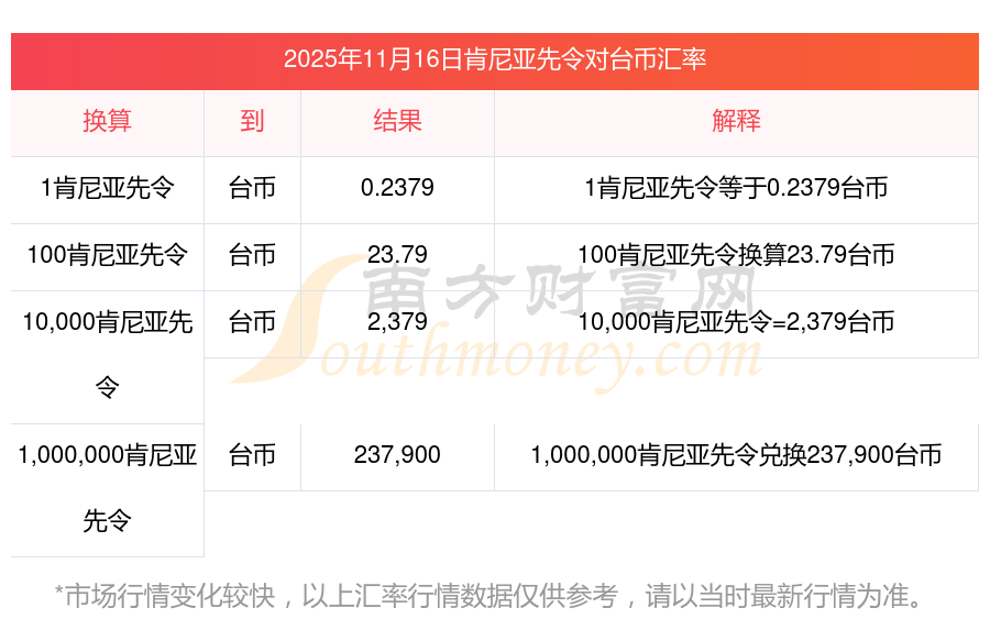 南方財富網(wǎng)為您提供肯尼亞先令對臺幣匯率最新價格詳情。