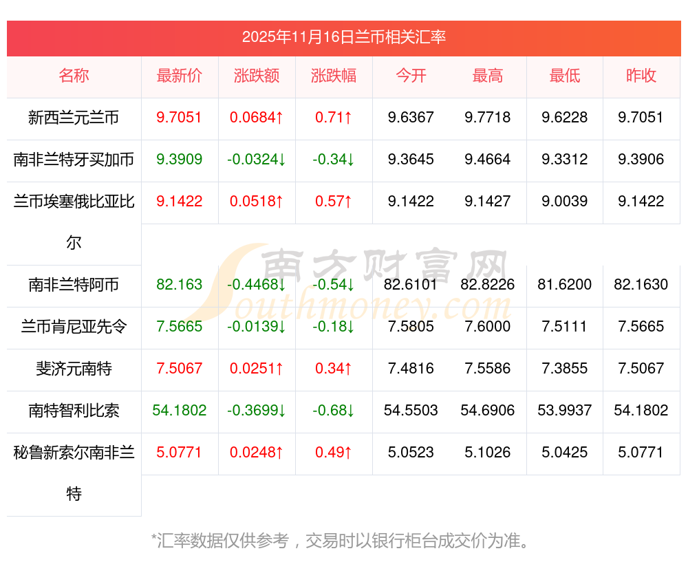 2025年11月16日蘭幣相關匯率查詢