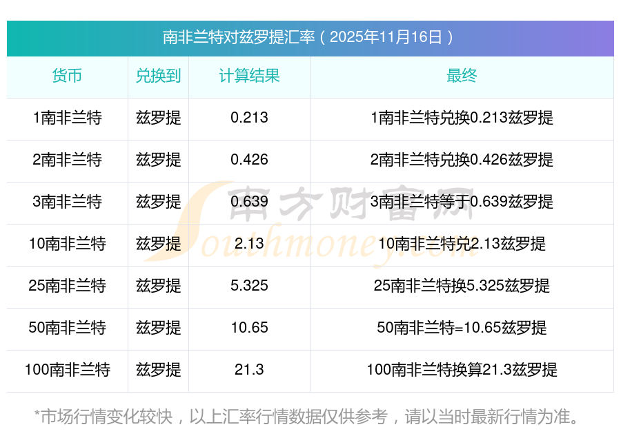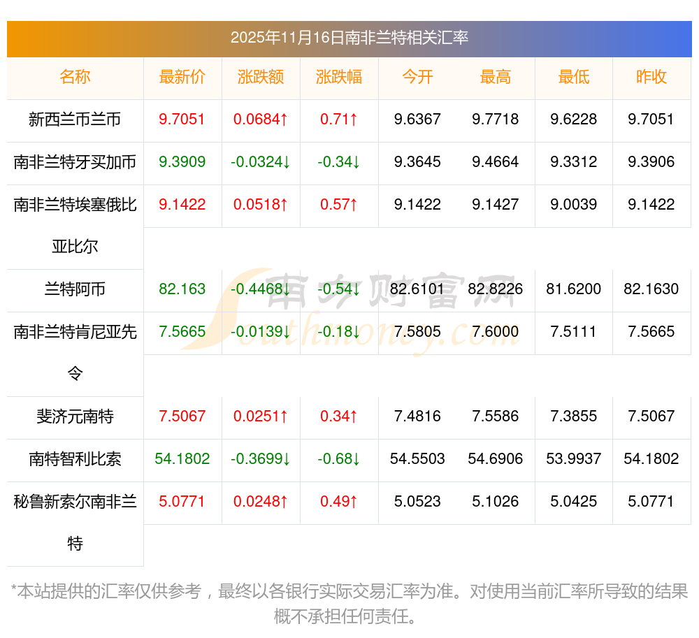 南方財(cái)富網(wǎng)為您提供南非蘭特對(duì)茲羅提匯率最新價(jià)格詳情。