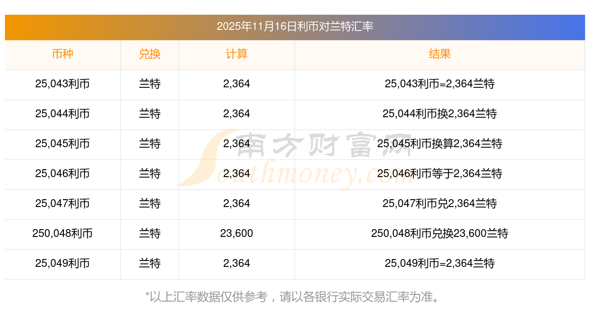 利幣匯率,2025年11月16日利幣對蘭特匯率查詢