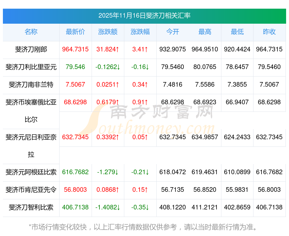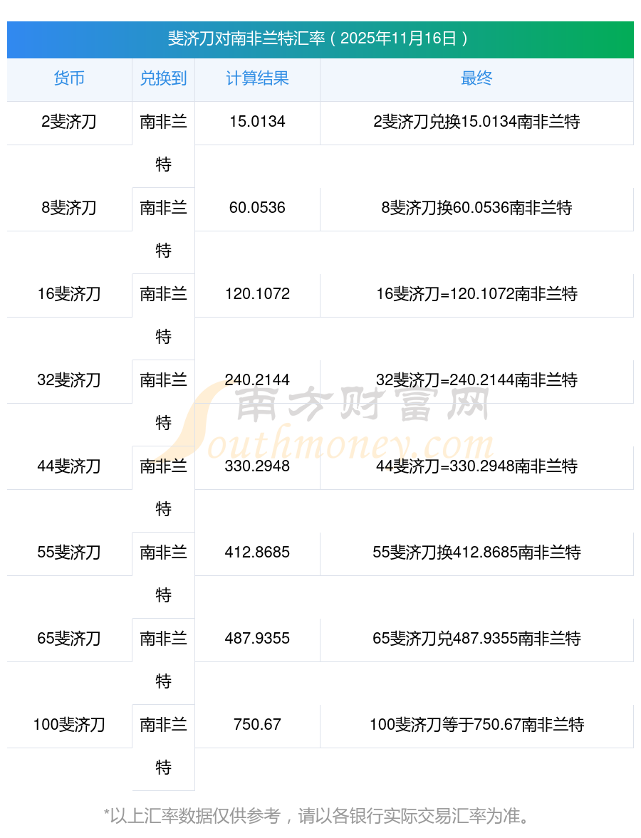 今天南非蘭特外匯價格 今日斐濟刀對南非蘭特匯率一覽表2025/11/16