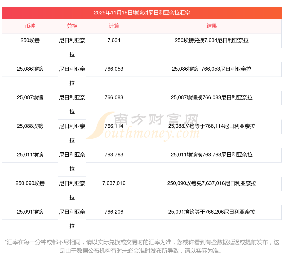 今天埃鎊16能換多少尼日利亞奈拉_外匯匯率計算 11-16