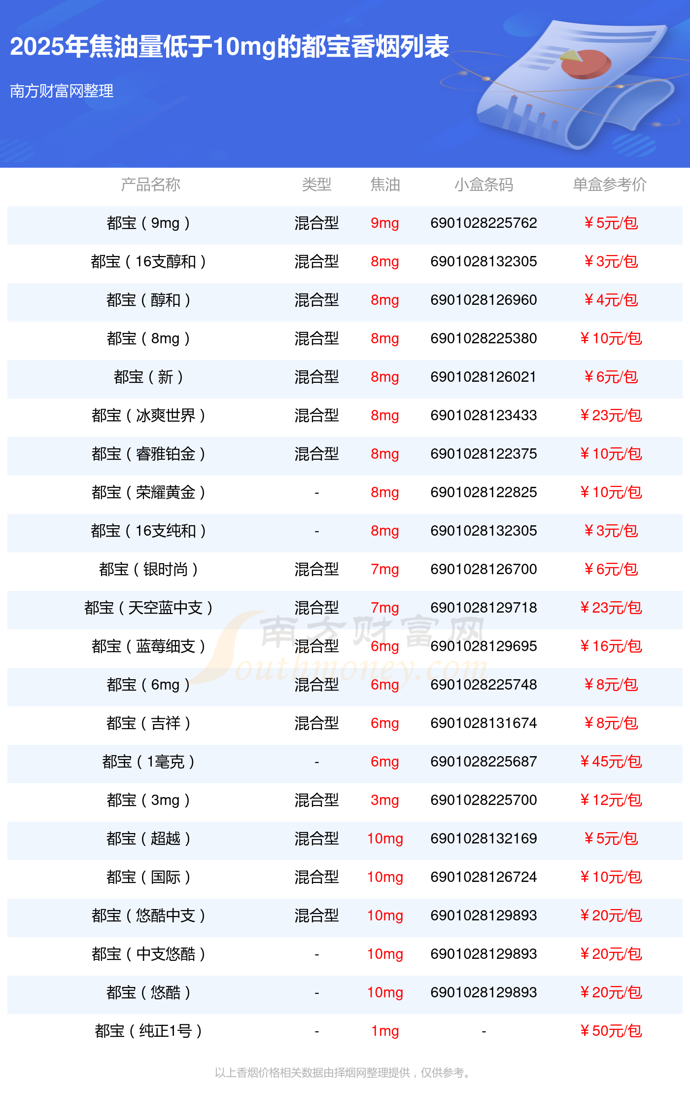 2025都寶香煙焦油量低于10mg的煙盤點(diǎn)
