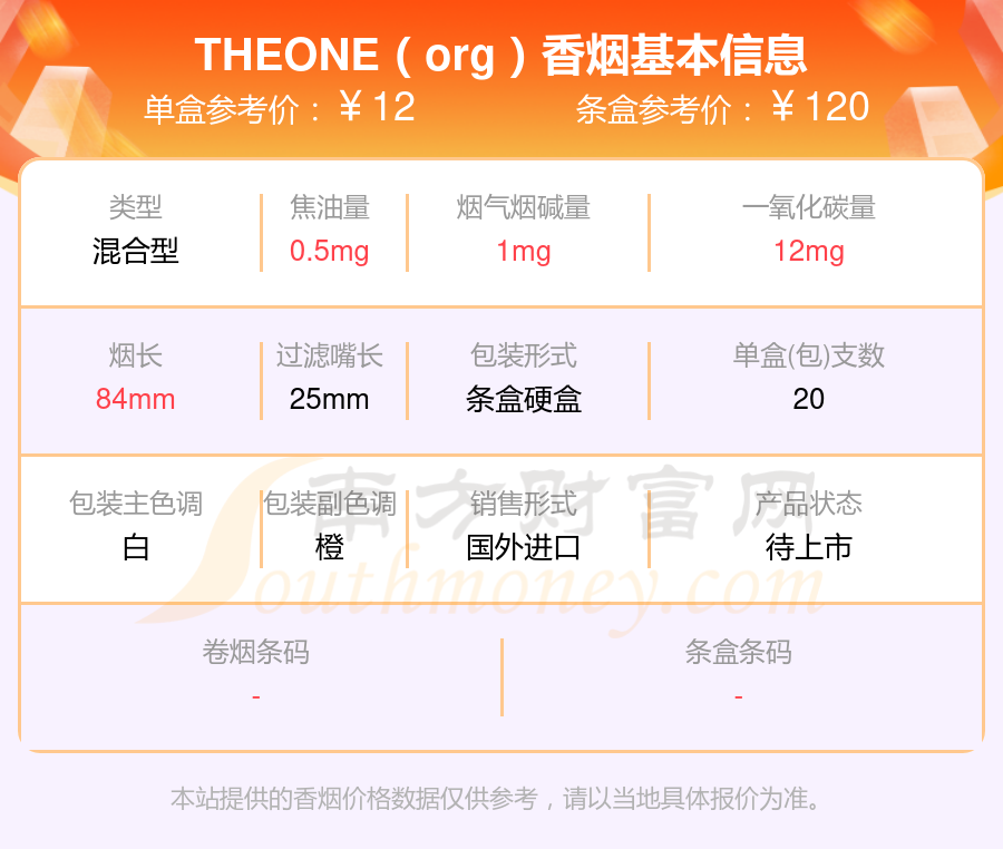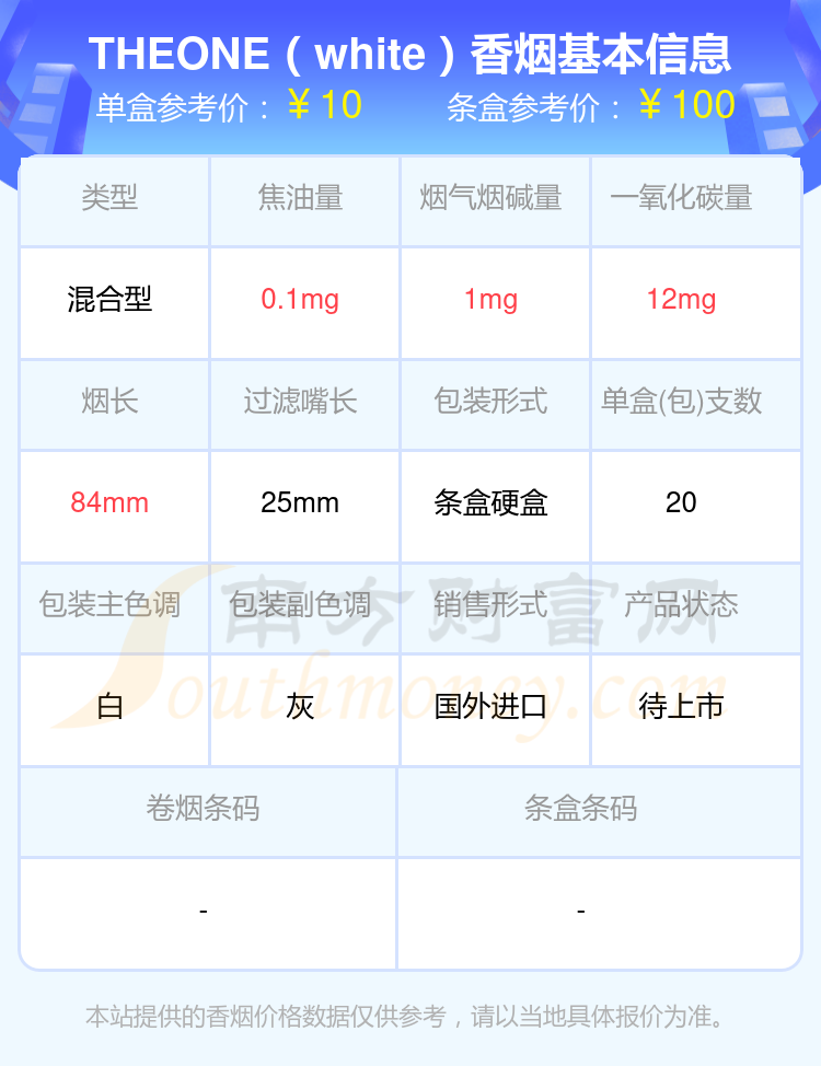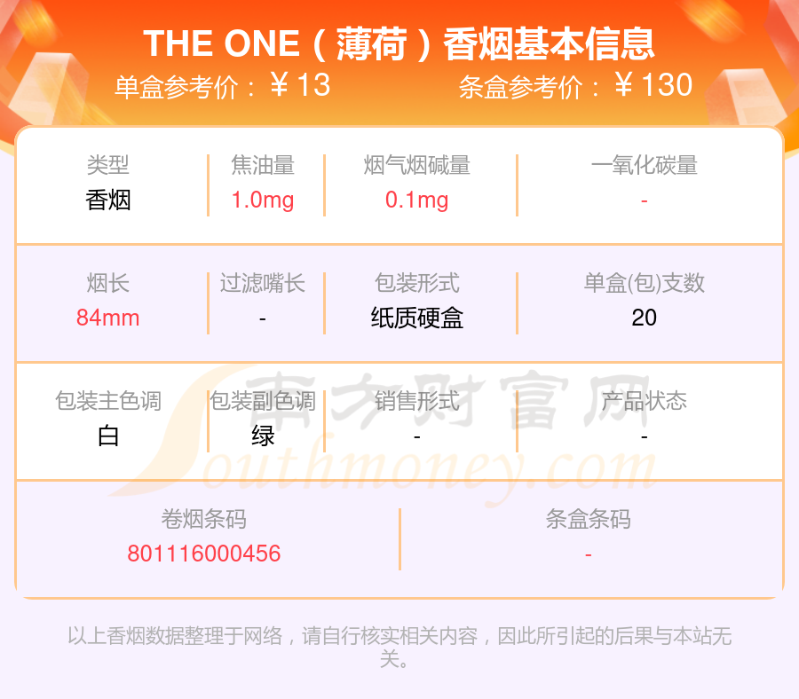 THEONE(white)參考價(jià)10元/包、THEONE(org)參考價(jià)12元/包、THE ONE(薄荷)參考價(jià)13.0元/包等。