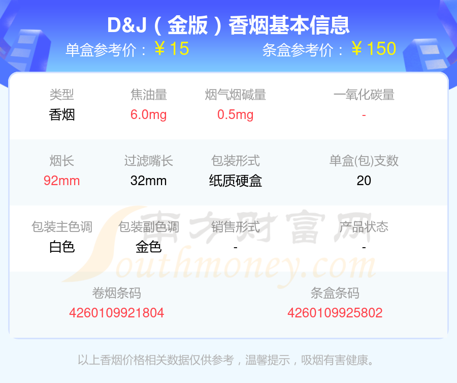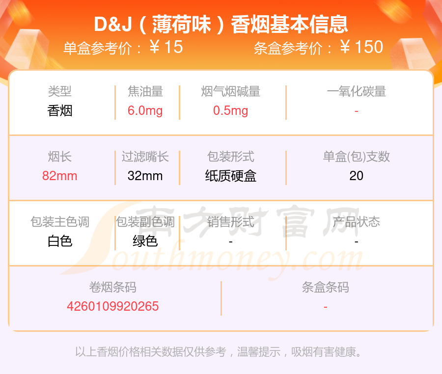 D&J(薄荷味)參考價(jià)15.0元/包、D&J(金版)參考價(jià)15.0元/包等。