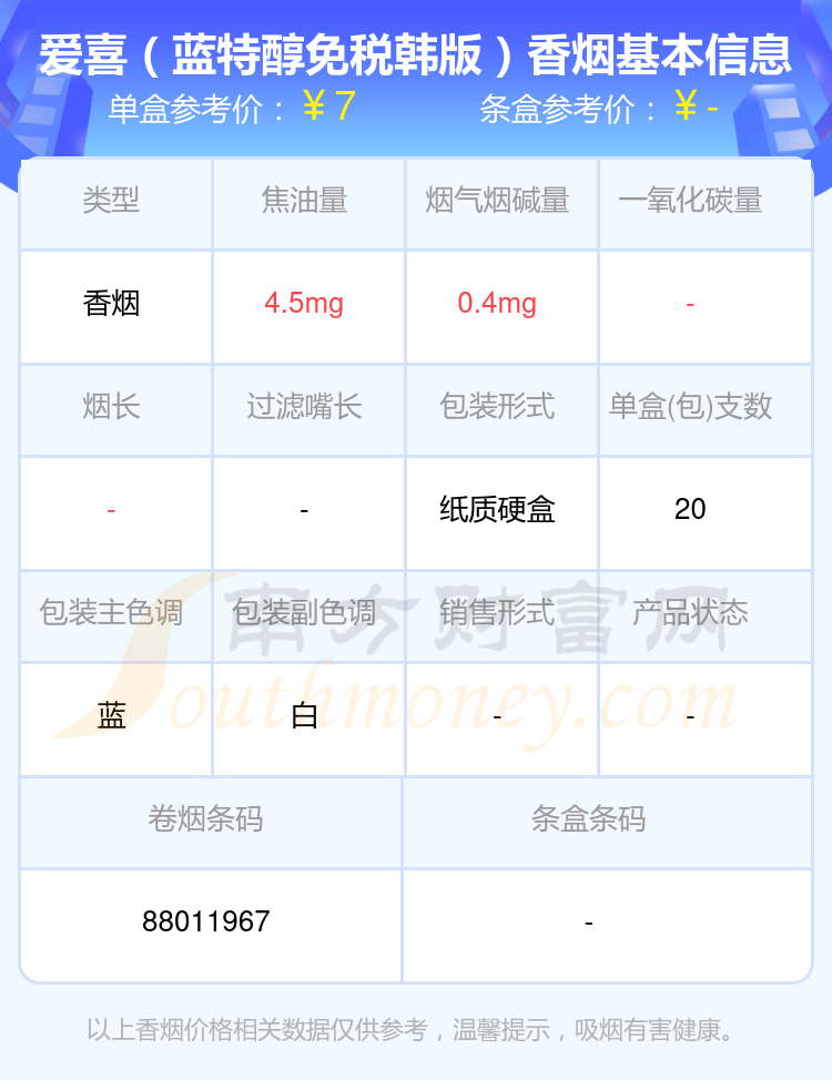 以上香煙價(jià)格相關(guān)數(shù)據(jù)由擇煙網(wǎng)整理提供,僅供參考。