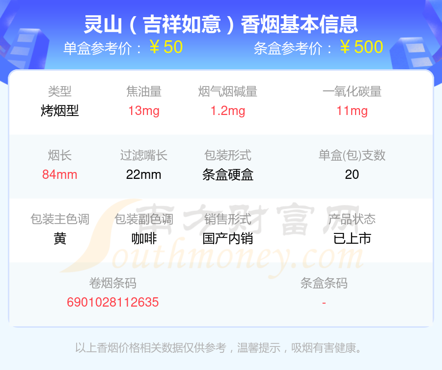 擇煙網(wǎng)為大家盤點(diǎn)了40-70元的靈山香煙,分別有靈山(吉祥如意)參考價(jià)50元/包、靈山(紫)參考價(jià)45元/包等。
