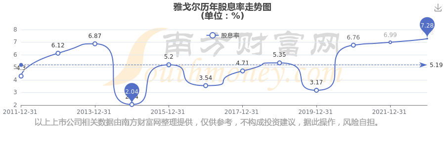 雅戈?duì)枤v年股息率走勢(shì)如下圖:
