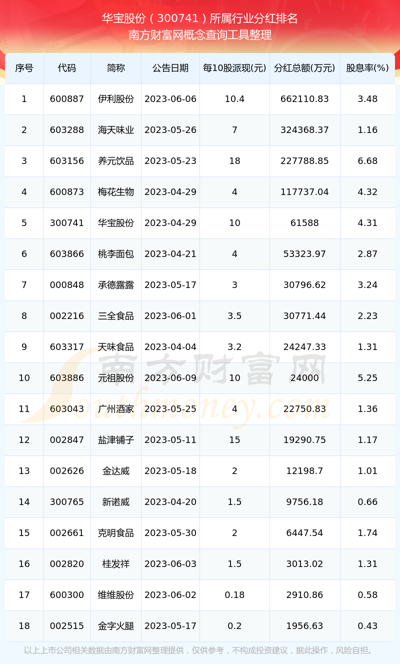 、華寶股份300741行業(yè)分紅排名