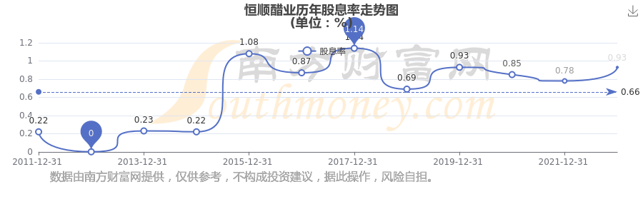 近年恒順醋業(yè)年度股息率走勢如下圖:
