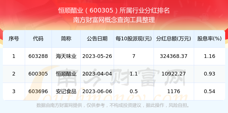 二、恒順醋業(yè)600305行業(yè)分紅排名
