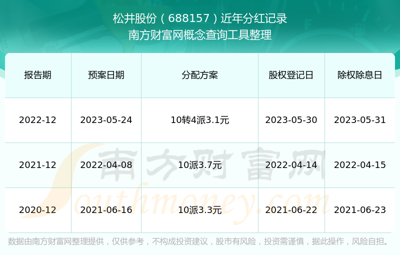 松井股份最新一次公布的分紅方案:10轉(zhuǎn)4派3.1元。