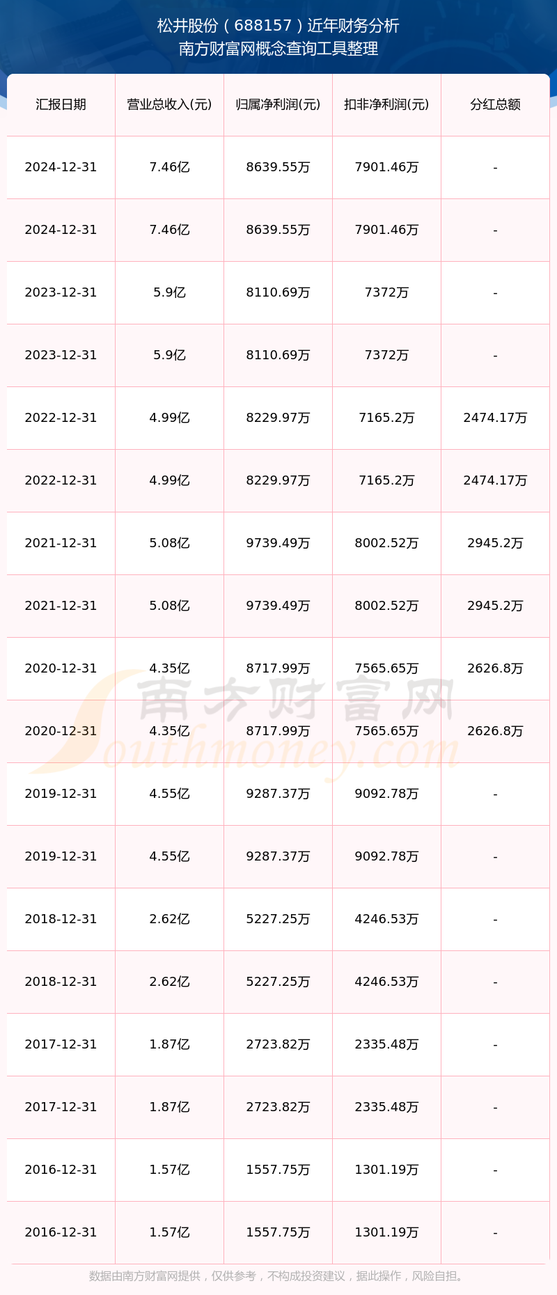 松井股份公司2024年實(shí)現(xiàn)營業(yè)收入7.46億元,同比增長26.41%;凈利潤8639.55萬元,同比增長6.52%;毛利率48.85%。