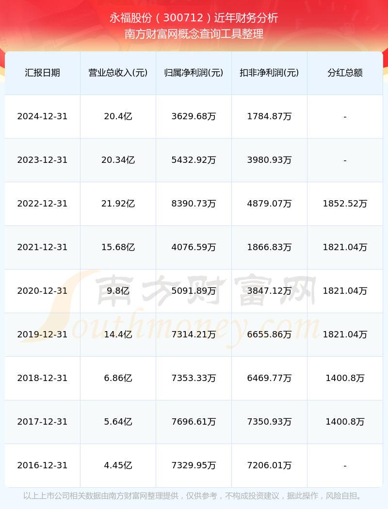 永福股份公司2024年實(shí)現(xiàn)營業(yè)收入20.4億元,同比增長0.3%;凈利潤3629.68萬元,同比增長-33.19%;毛利率18.23%。