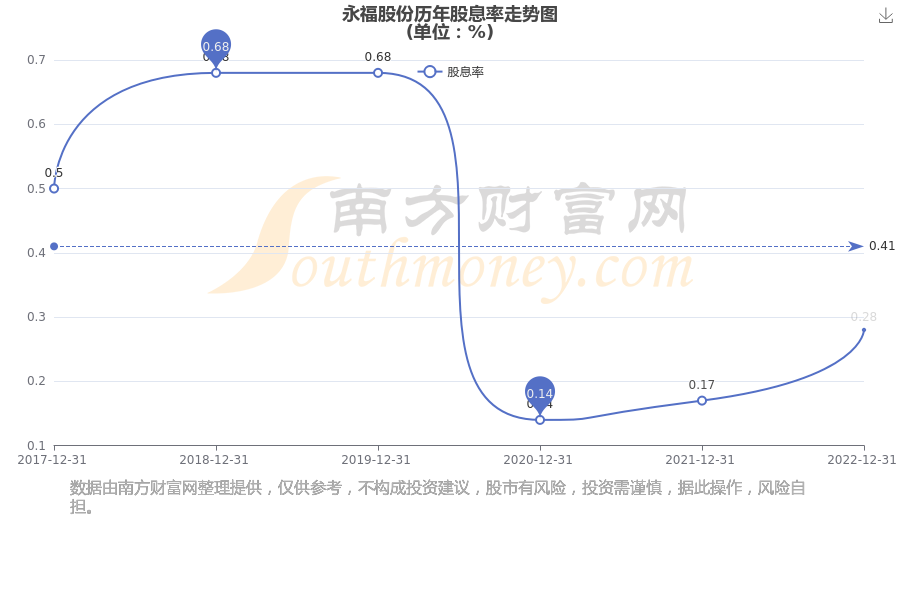 永福股份最新一次公布的分紅方案為10派1元。本次權(quán)益分派股權(quán)登記日為2023年6月6日,除權(quán)除息日為2023年6月7日,派息日為2023年6月7日。