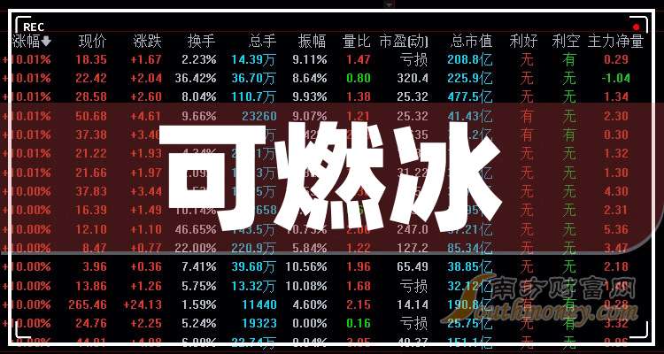 據南方財富網概念查詢工具數據顯示,可燃冰上市公司龍頭有: