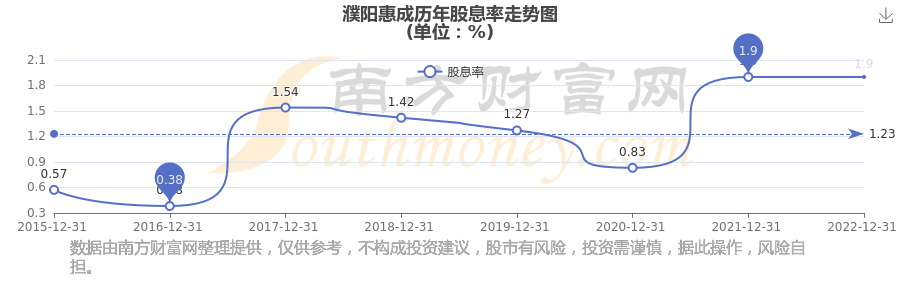 近年濮陽(yáng)惠成年度股息率走勢(shì)如下圖: