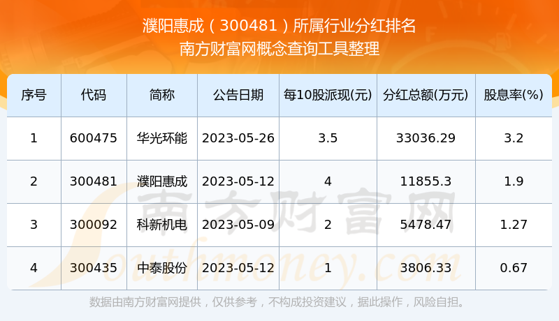 二、濮陽(yáng)惠成300481行業(yè)分紅排名