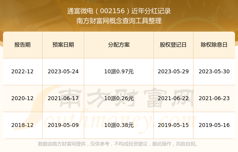 通富微電最新一次公布的分紅方案:10派0.97元。