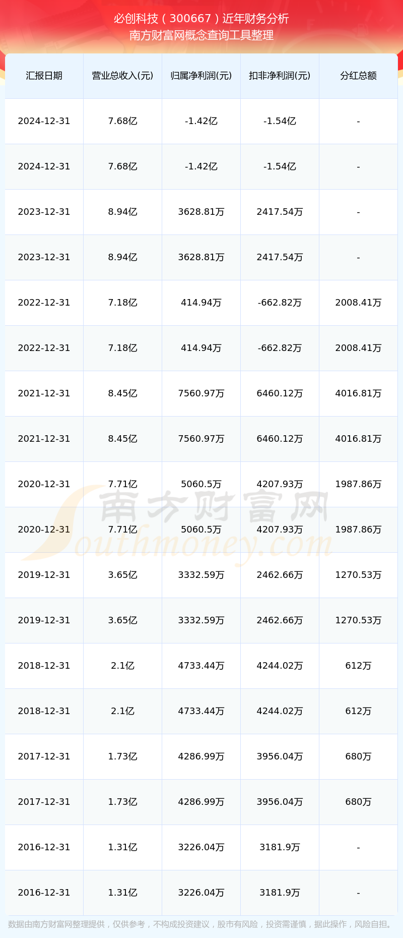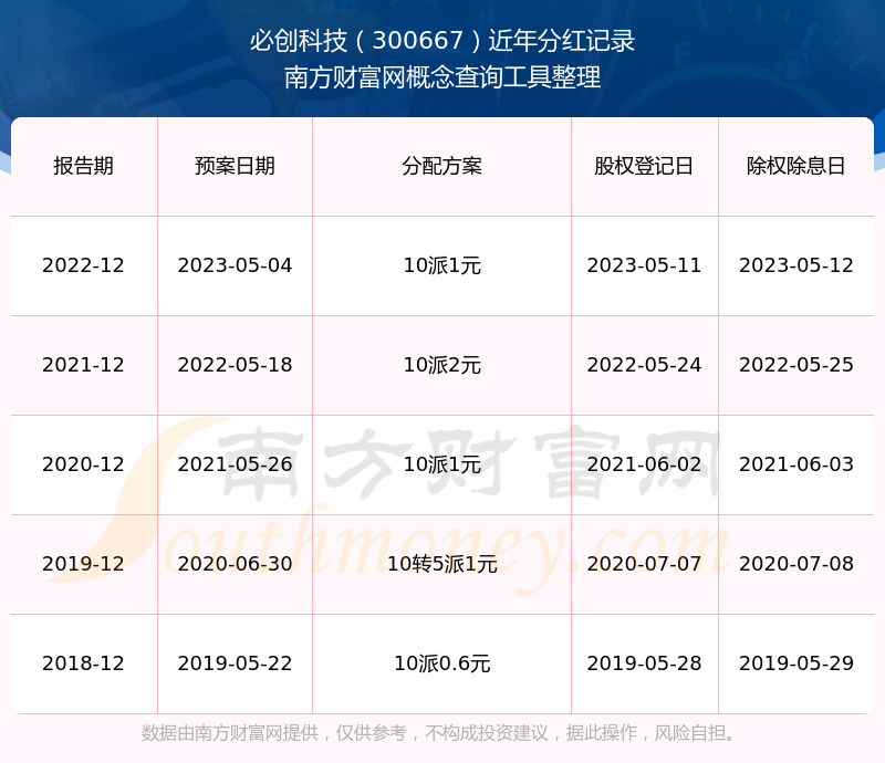 近年必創(chuàng)科技分紅派息情況如下表所示: