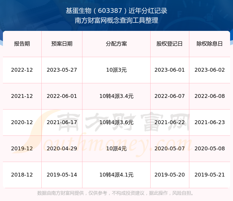 基蛋生物最新一次公布的分紅方案:10派3元。