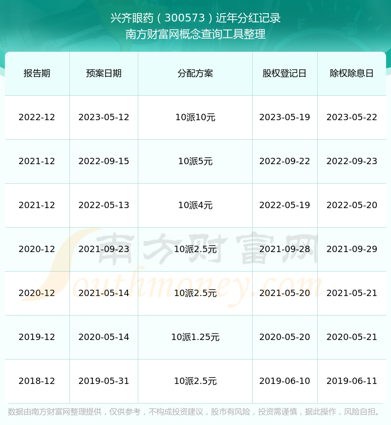 興齊眼藥最新一次公布的分紅方案為10派10元。本次權(quán)益分派股權(quán)登記日為2023年5月19日,除權(quán)除息日為2023年5月22日,派息日為2023年5月22日。