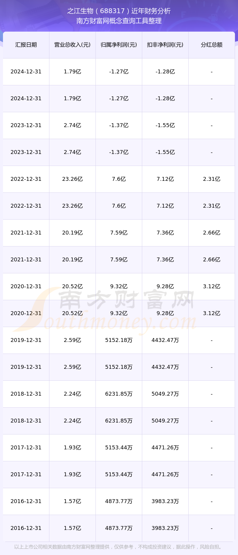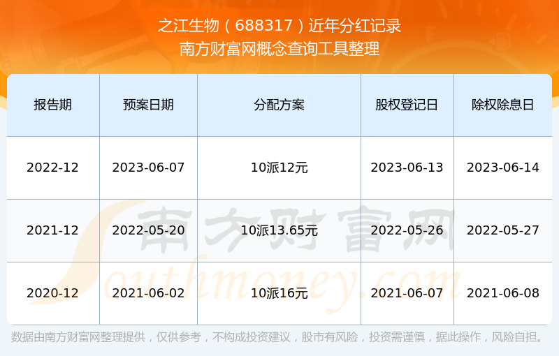 近年之江生物分紅派息情況如下表所示:
