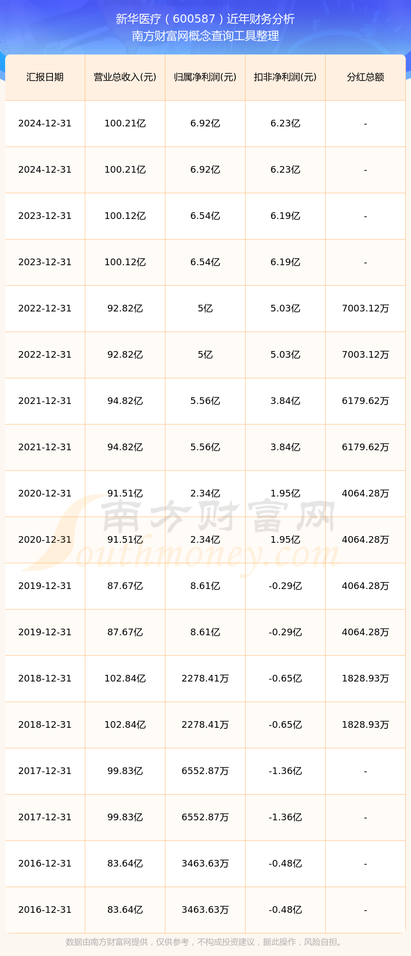 新華醫(yī)療2024年總營(yíng)收100.21億,同比增長(zhǎng)0.09%;凈利潤(rùn)6.92億,同比增長(zhǎng)5.75%;銷(xiāo)售毛利率26.06%。