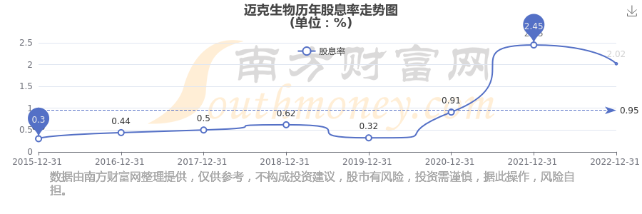 近年邁克生物年度股息率走勢(shì)如下圖: