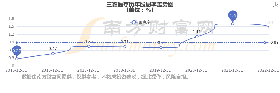 近年三鑫醫(yī)療年度股息率走勢(shì)如下圖: