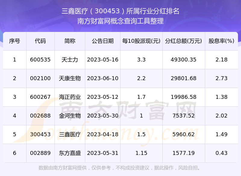 二、三鑫醫(yī)療300453行業(yè)分紅排名