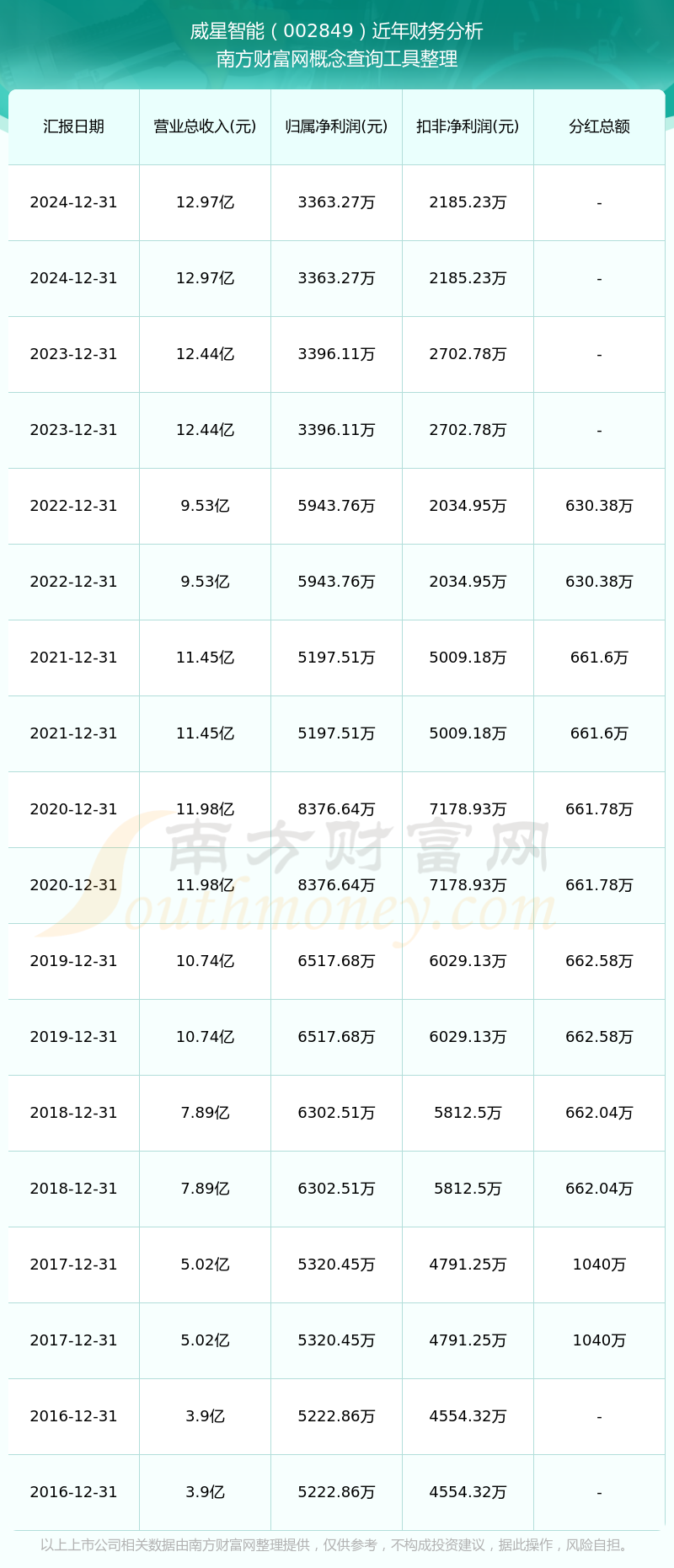 威星智能公司2024年實(shí)現(xiàn)營業(yè)收入12.97億元,同比增長4.32%;凈利潤3363.27萬元,同比增長-0.97%;毛利率32.31%。