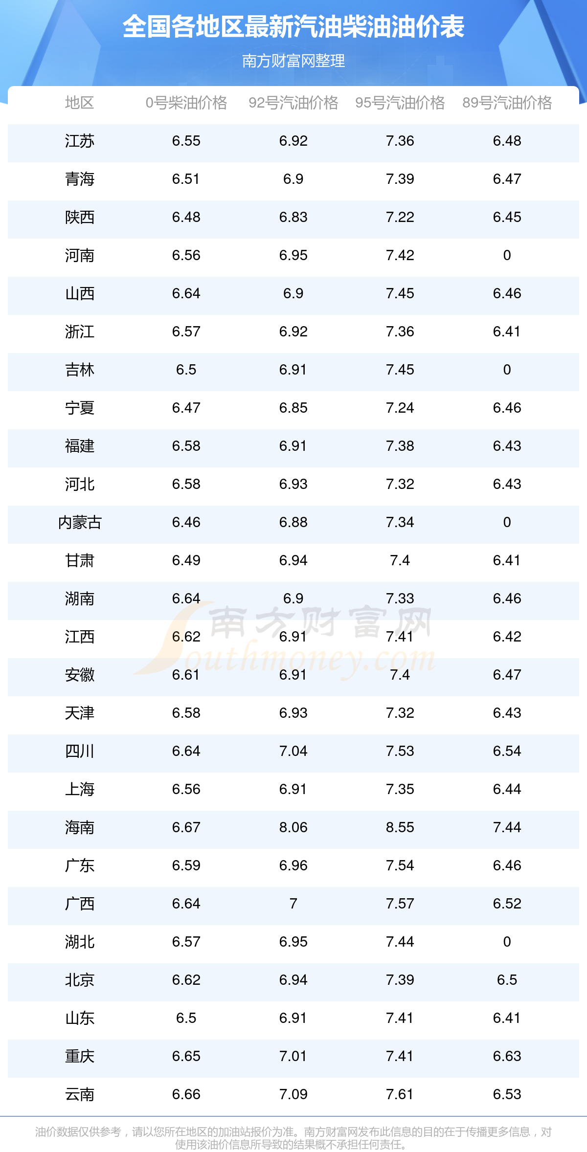 11月12日全國(guó)92、95汽油最新價(jià)格表