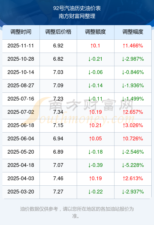 2025年油價(jià)調(diào)整時(shí)間表及價(jià)格